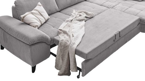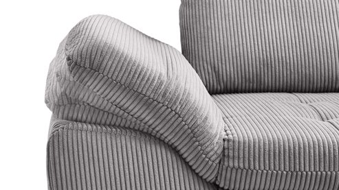 grauer Cordbezug und chromfarbenes Metall