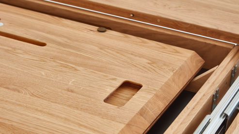 Fronten mit durchgehenden Lamellen, der Korpus ist keilgezinkt