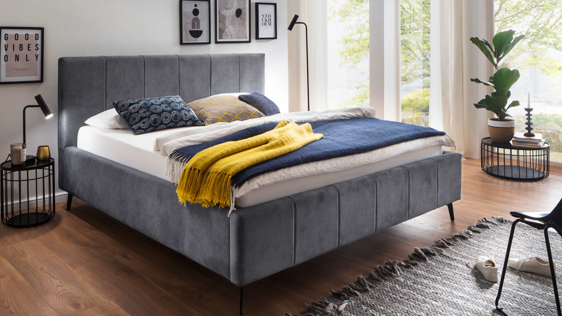 Das moderne Polsterbettgestell ist optional im Möbelhaus vor Ort auch inklusive hochwertiger 7-Zonen-Wendematratze mit Tonnentaschenfederkern erhältlich. Wählen Sie aus verschiedenen Größen und Farbausführungen.