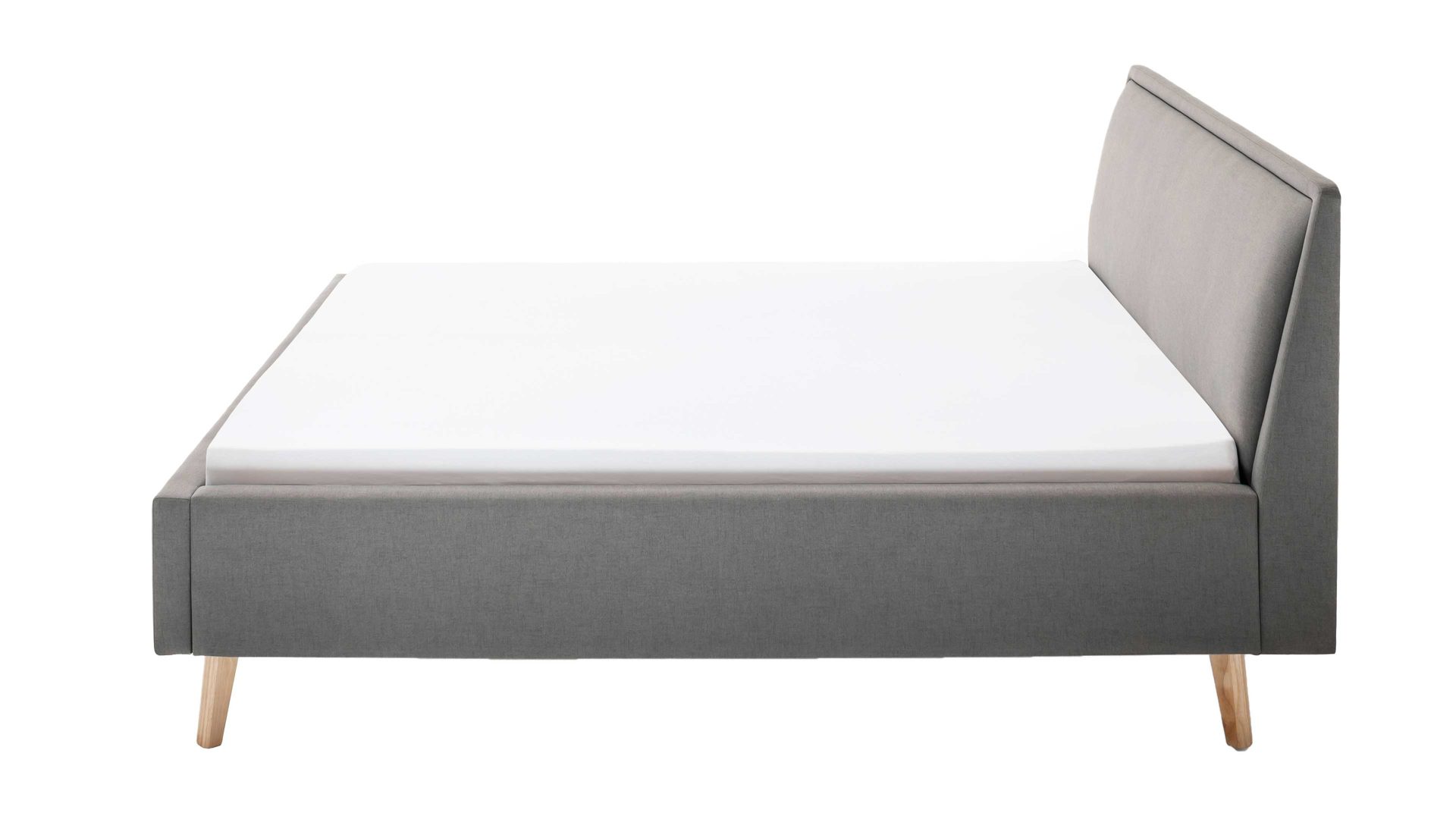 Das Polsterbettgestell Frieda mit Bettkasten verkörpert modernen Komfort. Mit dem hellgrauen Stoffbezug und den eichfarbenen Holzfüßen präsentiert es sich elegant und gemütlich designt. Die Bettseiten sind genauso wie das Polsterkopfteil glatt bezogen. Letzteres ist eine angenehm weiche Rückenlehne, wenn Sie abends im Bett vor dem Schlafen noch entspannt in Ihrem Buch lesen oder fernsehen möchten.