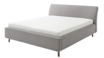 Pure Eleganz bringt das Polsterbettgestell Mila in Ihr Schlafzimmer. Die eichefarbenen Füße wirken filigran und verleihen diesem Modell eine luftig leichte Ausstrahlung. Ausgestattet ist das schicke Bett mit dem Bezug Capri 4150 aus hellgrauem Flachgewebe.