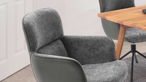 anthrazitfarben melierter Strukturbezug, kombiniert mit anthrazitfarbenen Leder und Metallgestell