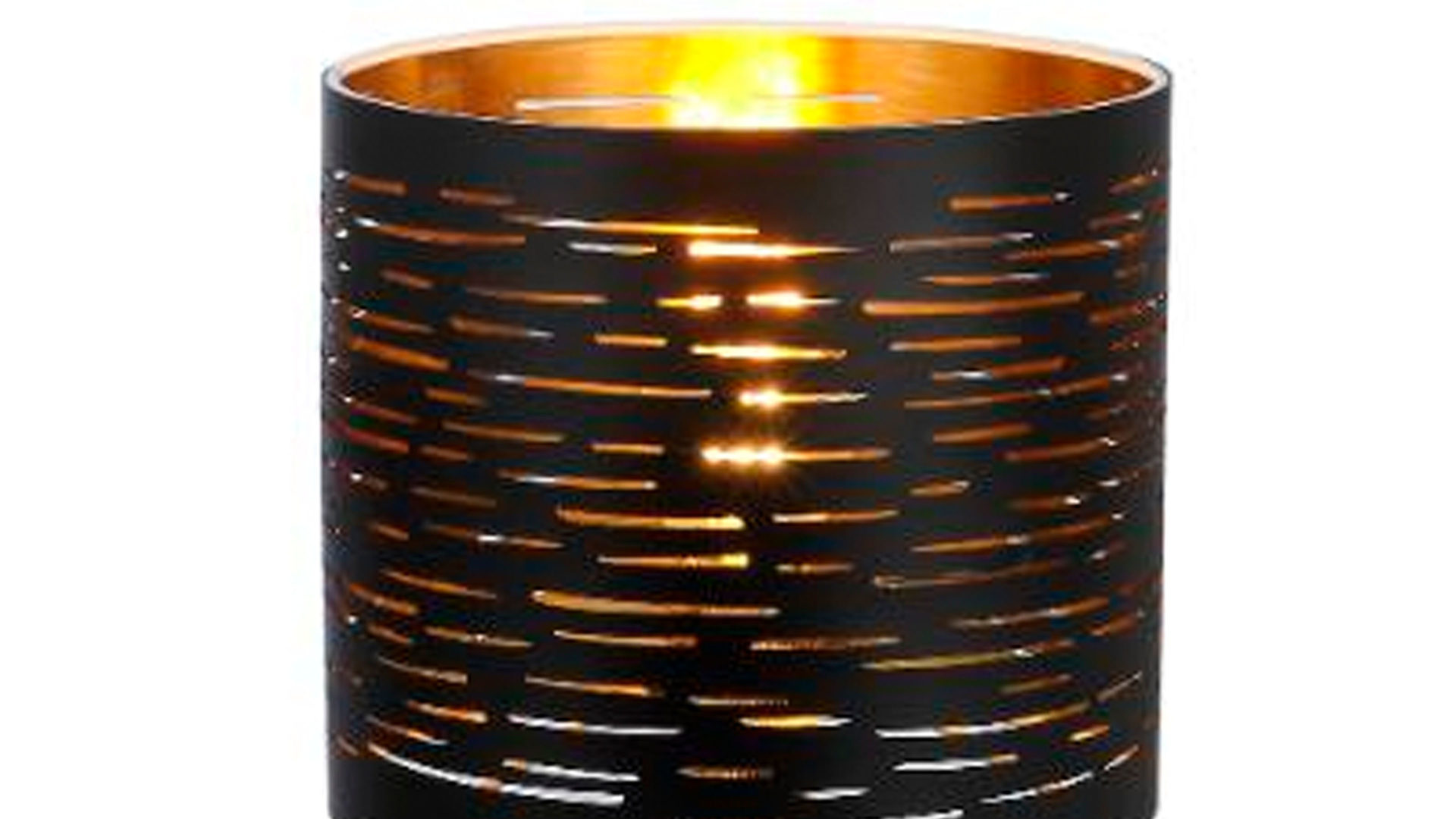 GLOBO Tischlampe Tunno | schwarzer Lampenschirm mit Dekorstanzungen, innen mit Blattgold belegt | mattschwarze Metallfüße | Durchmesser ca. 17 cm, Höhe ca. 35 cm | Schnurschalter | ohne Leuchtmittel, benötigt wird 1x E14, maximal 25 Watt | geeignet für Leuchtmittel der Energieeffizienzklasse A bis G (Spektrum A bis G) | Lampenserie