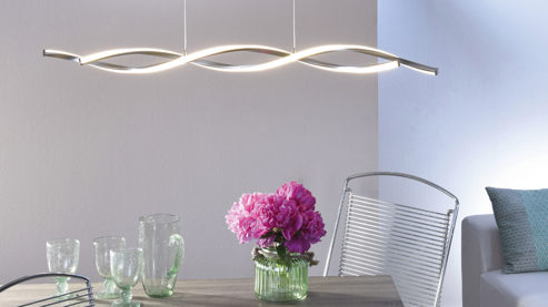Wenn Sie über Ihrem Esstisch einen einzigartigen Blickfang möchten, dann ist die LED-Pendelleuchte Polina des Herstellers Paul Neuhaus die richtige Lampe. Das Modell aus Stahl begeistert mit einem formschönen und gleichzeitig gedrehten Gestell, das aus zwei Elementen besteht. Die geflochtene Form der Pendellampe erzeugt eine dynamische Optik und verzaubert so Ihre Gäste im Wohnzimmer.