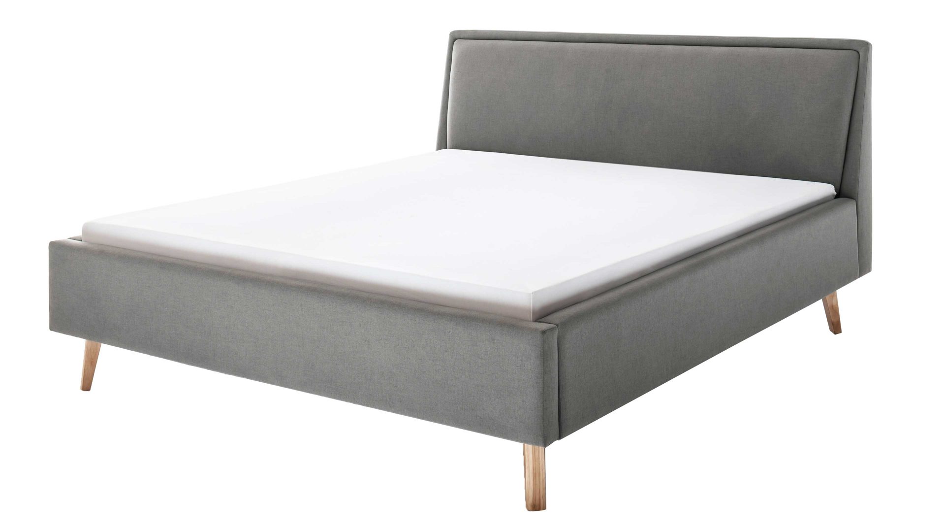 Das Polsterbettgestell Mattis begeistert durch die elegante Optik sowie die hervorragende Material- und Verarbeitungsqualität. Es kombiniert einen hellgrauen Flachgewebe-Bezug mit eichefarbenen Holzfüßen. Sowohl die Bettseiten als auch das Polsterkopfteil sind glatt bezogen. Letzteres lädt Sie ein, sich anzulehnen, wenn Sie abends im Bett vor dem Schlafen noch fernsehen oder in einem Buch lesen.