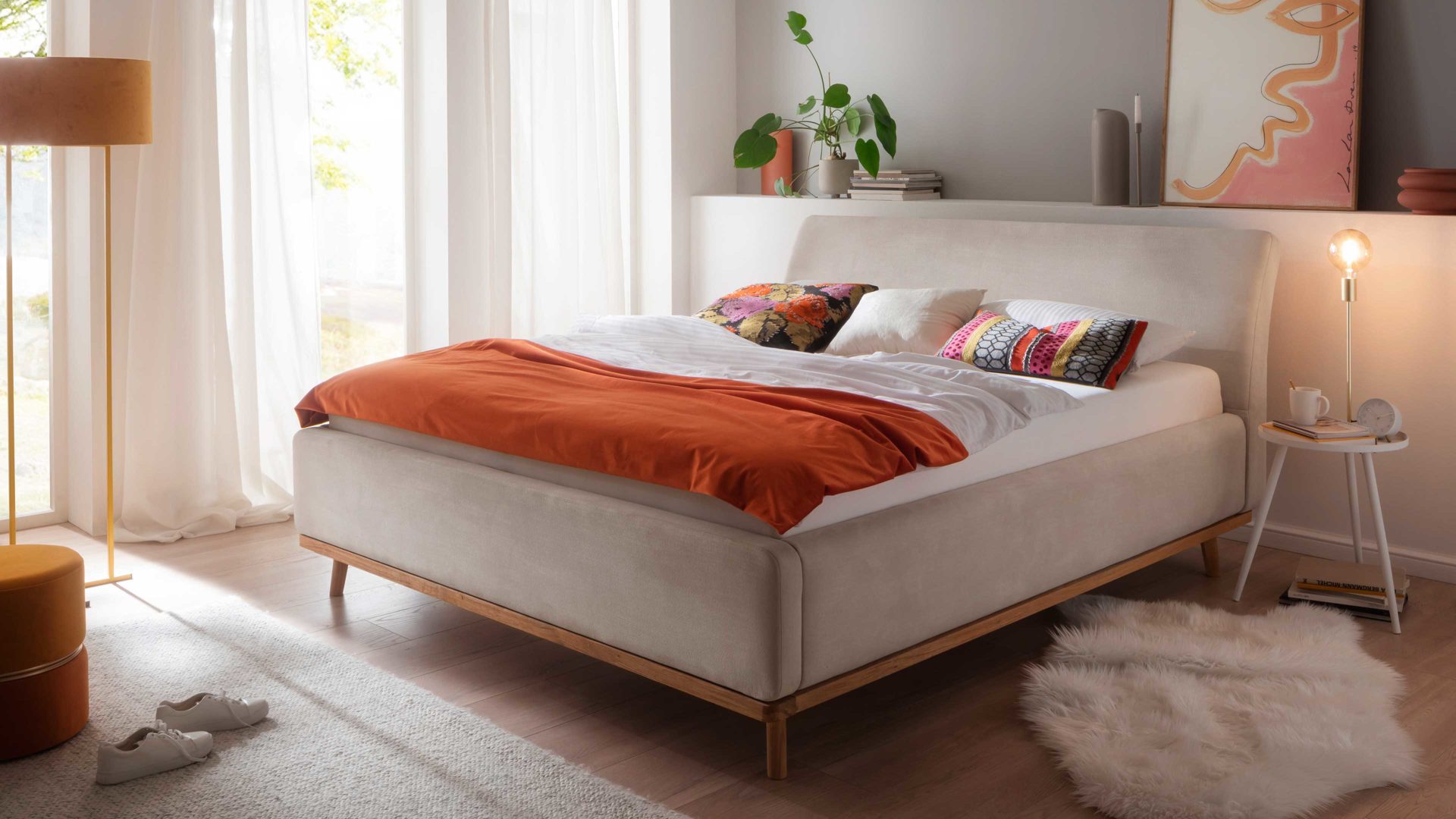 Das Highlight stellt das glatte, leicht gerundete Kopfteil dar. Dadurch erhält das Polsterbettgestell ein sanftes und besonders wohnliches Aussehen und passt zu verschiedensten Einrichtungsstilen.