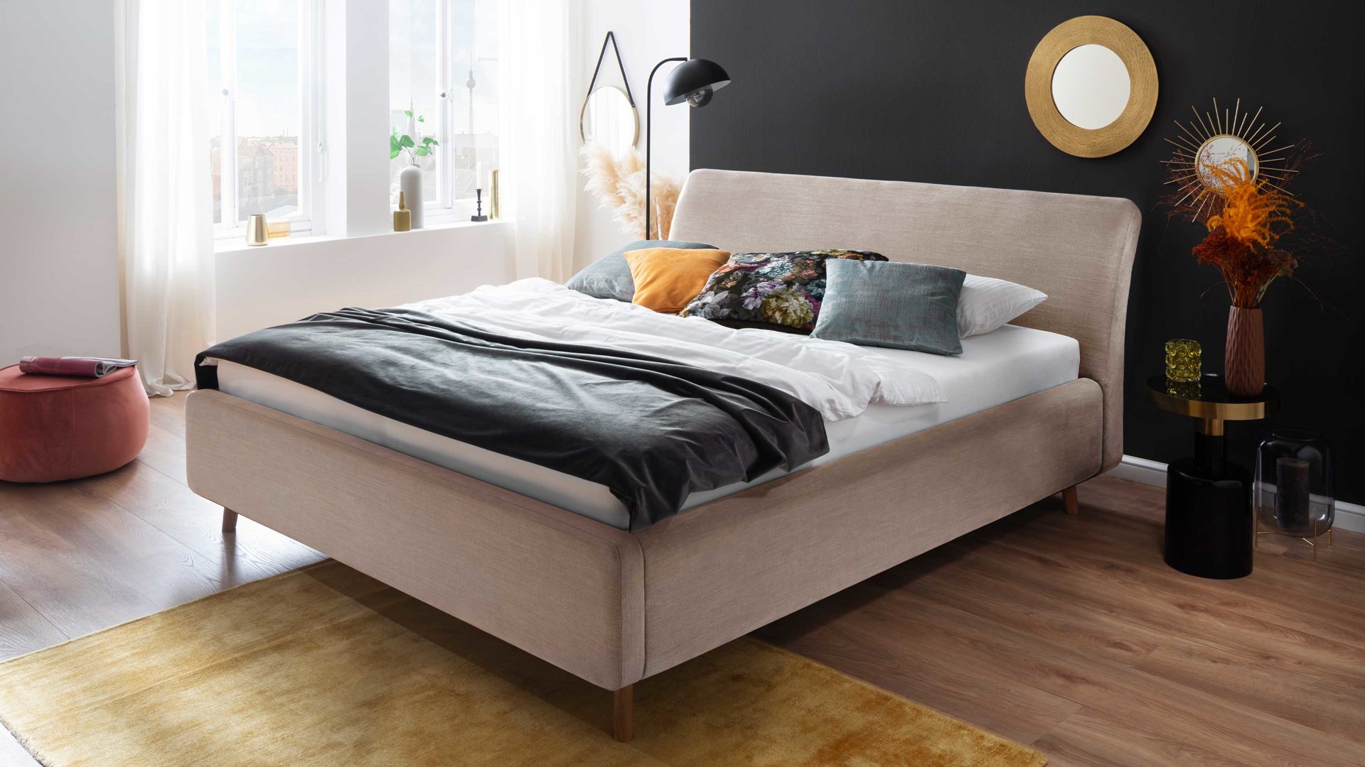 Das Highlight stellt das glatte, leicht gerundete Kopfteil dar. Dadurch erhält das Polsterbettgestell ein sanftes und besonders wohnliches Aussehen und passt zu verschiedensten Einrichtungsstilen.