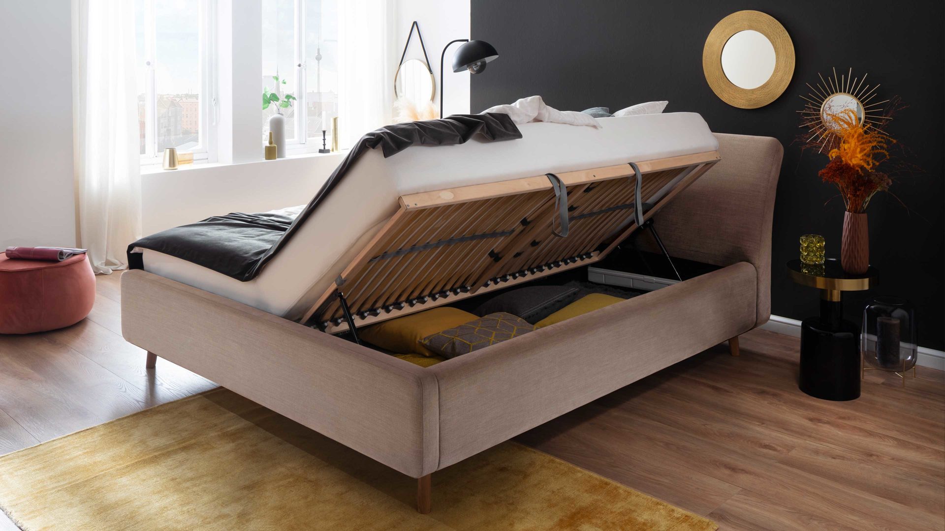 Polsterbettgestell Mila mit Bettkasten, glattes Kopfteil