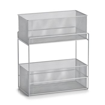 Dank diesem praktischen Etagenregal aus Stahlgeflecht mit zwei Körben aus Mesh gewinnen Sie wertvollen Stauraum in Ihrem Zuhause. Es schafft Ordnung in Ihren Schränken und Regalen und eignet sich ideal für den Einsatz in den Küchen-, Vorrats- oder Badschränken.