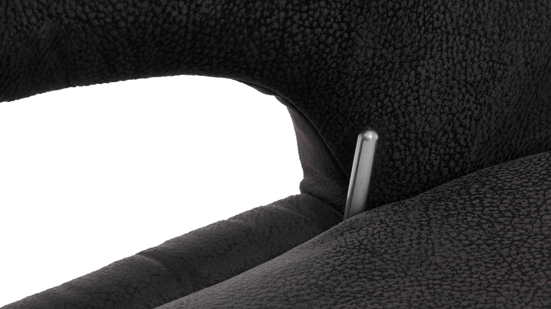 anthrazitfarbener Mikrofaserbezug mit Prägung in Lederoptik und heller Doppelstepp-Kontrastnaht