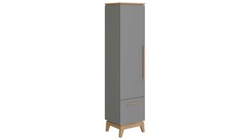 Funktional überzeugt der erstklassig verarbeitete Schrank mit einer Tür samt drei Einlegeböden und vier Fächern sowie einer Schublade. Demnach steht reichlich geschlossener Stauraum für verschiedene Gegenstände zur Verfügung, etwa Spielsachen, Bücher und Zeitschriften, Fotoalben, CDs, DVDs und Blu-Rays oder andere Dinge, die vor äußeren Einflüssen wie Licht und Staub geschützt aufbewahrt werden wollen. Auf ca. 48 x 161 x 40 cm (BxHxT) belaufen sich die Maße des praktischen Stauraumelements.