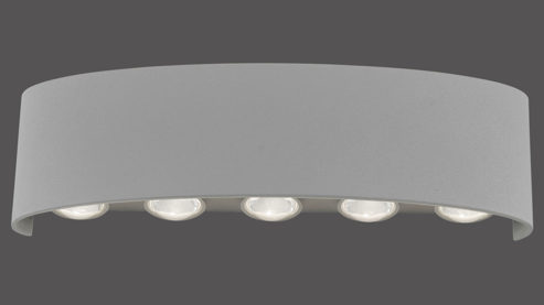 Außenlampe mit halbrundem Lampenschirm und Ausleuchtung nach oben und unten