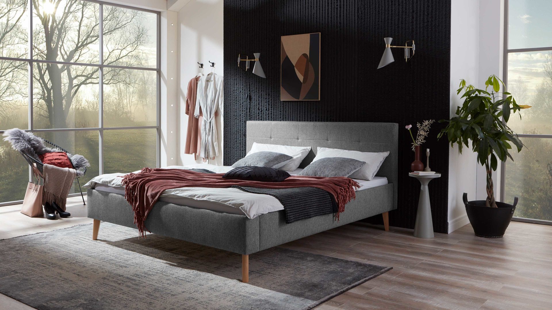 grauer Bezug Stelar 92 & Holzfüße - Liegefläche ca. 180 x 200 cm