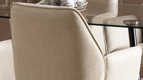 der Stuhl ist in verschieden Stofffarben erhältlich