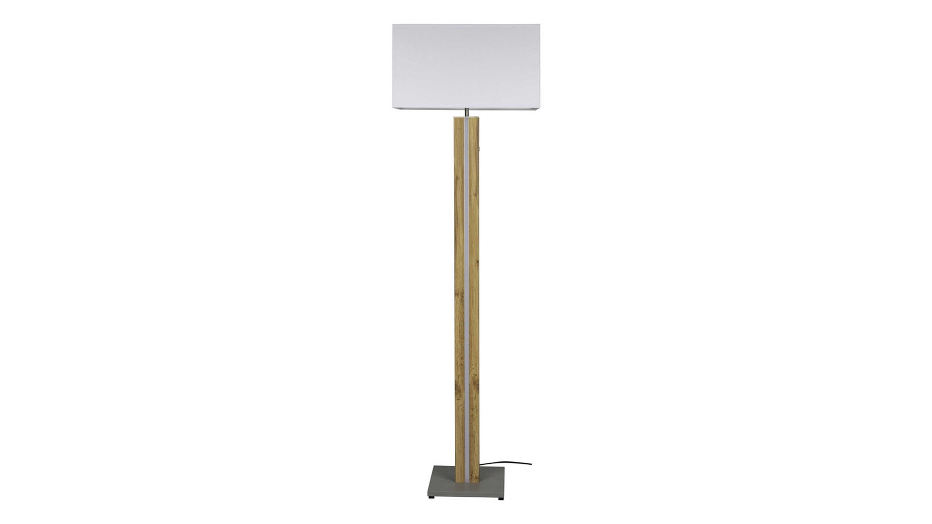 weißer Stoff-Lampenschirm kombiniert mt eichefarbenem MDF-Gestell