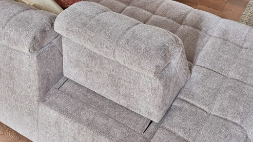 die Rückenlehne wird leicht nach oben und nach vorne gezogen, um die Sitztiefe von ca. 59 auf 79 cm zu verändern
