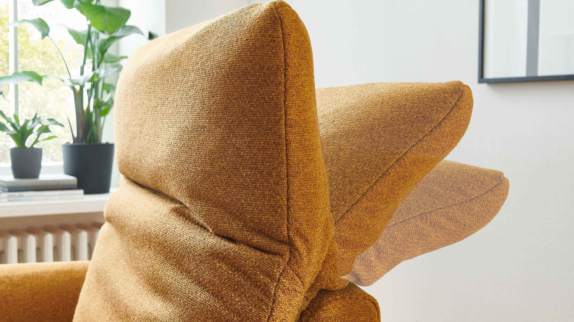 Diese Kopfteilverstellung ist eine praktische Mehrpreis-Funktion für die ca. 88 cm breiten Elemente aus dem Polsterprogramm New Jersey, das sich durch seine moderne und gemütliche Ausstrahlung, eine exzellente Material- und Verarbeitungsqualität sowie extra hohen Sitzkomfort auszeichnet.