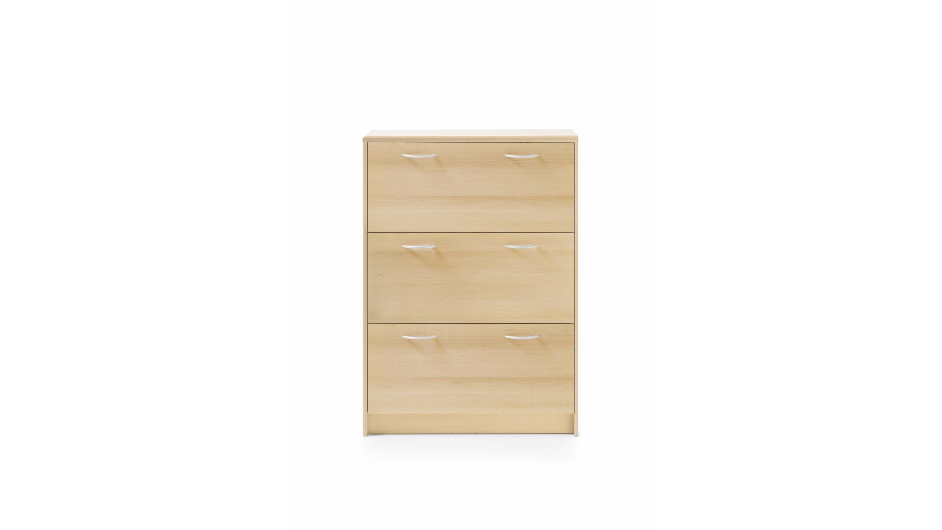 Der Schuhkipper Optimus ist enorm stilvoll designt und ausgesprochen praktisch. Mit den warmen buchefarbenen Kunststoffoberflächen bringt der Schuhschrank moderne Eleganz gepaart mit natürlichem Charme in den Raum, in dem Sie ihn platzieren. Akzente setzen die alufarbenen Griffe - sie heben sich einerseits ab, verbinden sich auf der anderen Seite aber auch perfekt mit dem Holzton des attraktiv gestalteten Korpus.