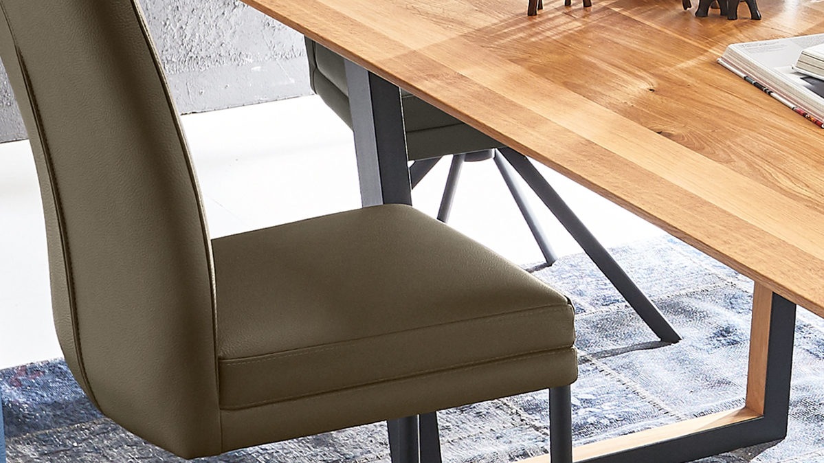 olivgrünes Leder und mattschwarzes Eisen