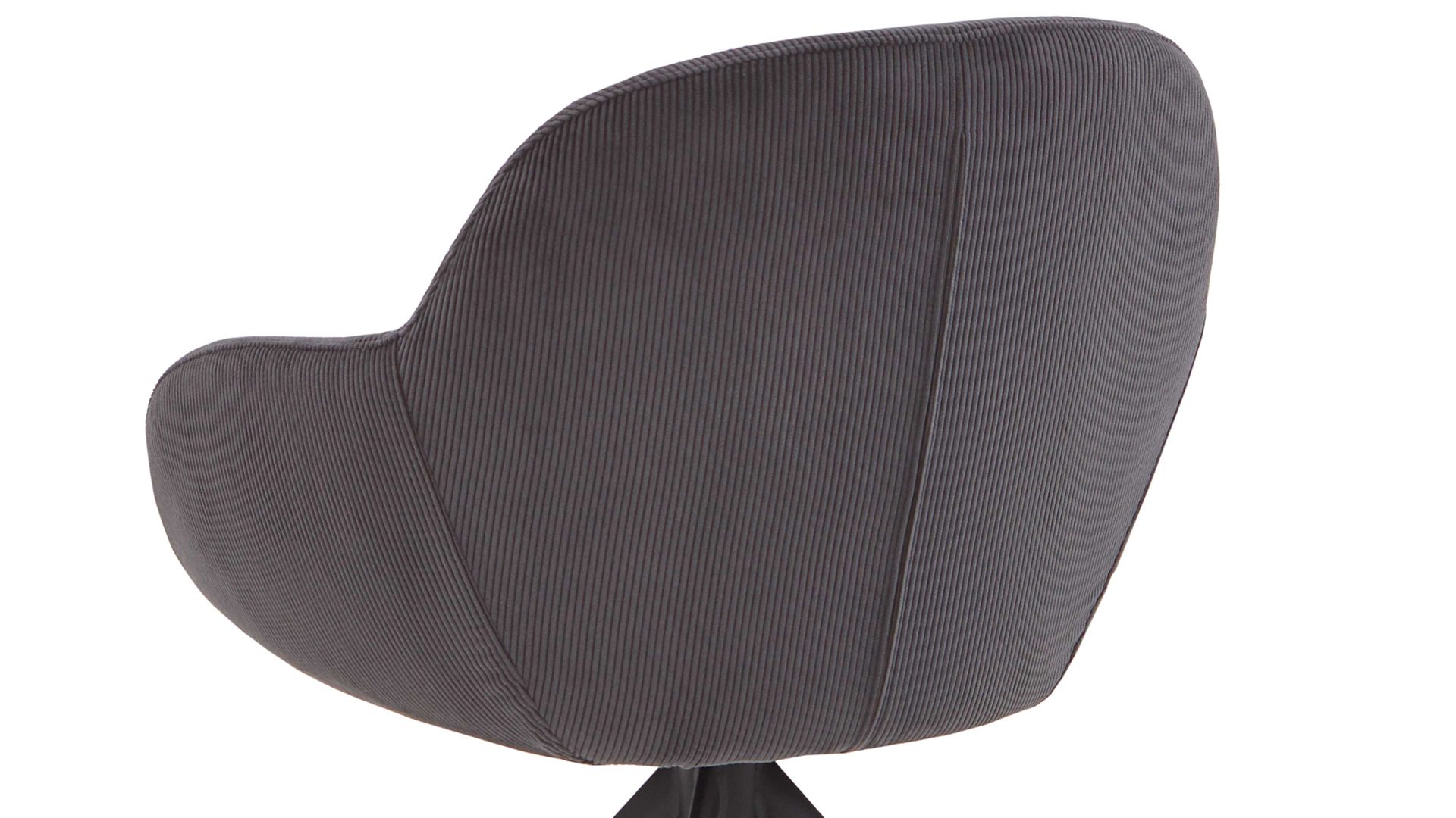 Der hochwertige NIEHOFF Armlehnstuhl Dacapo verkörpert moderne Eleganz und Gemütlichkeit. Mit dem mattschwarz lackierten Stativgestell aus robustem Eisen sowie dem trendigen anthrazitfarbenen Cordbezug überzeugt er sowohl optisch als auch qualitativ. Dank der Ergo-Schale mit Formschaum bietet der Designerstuhl für das Esszimmer extra hohen Sitzkomfort.