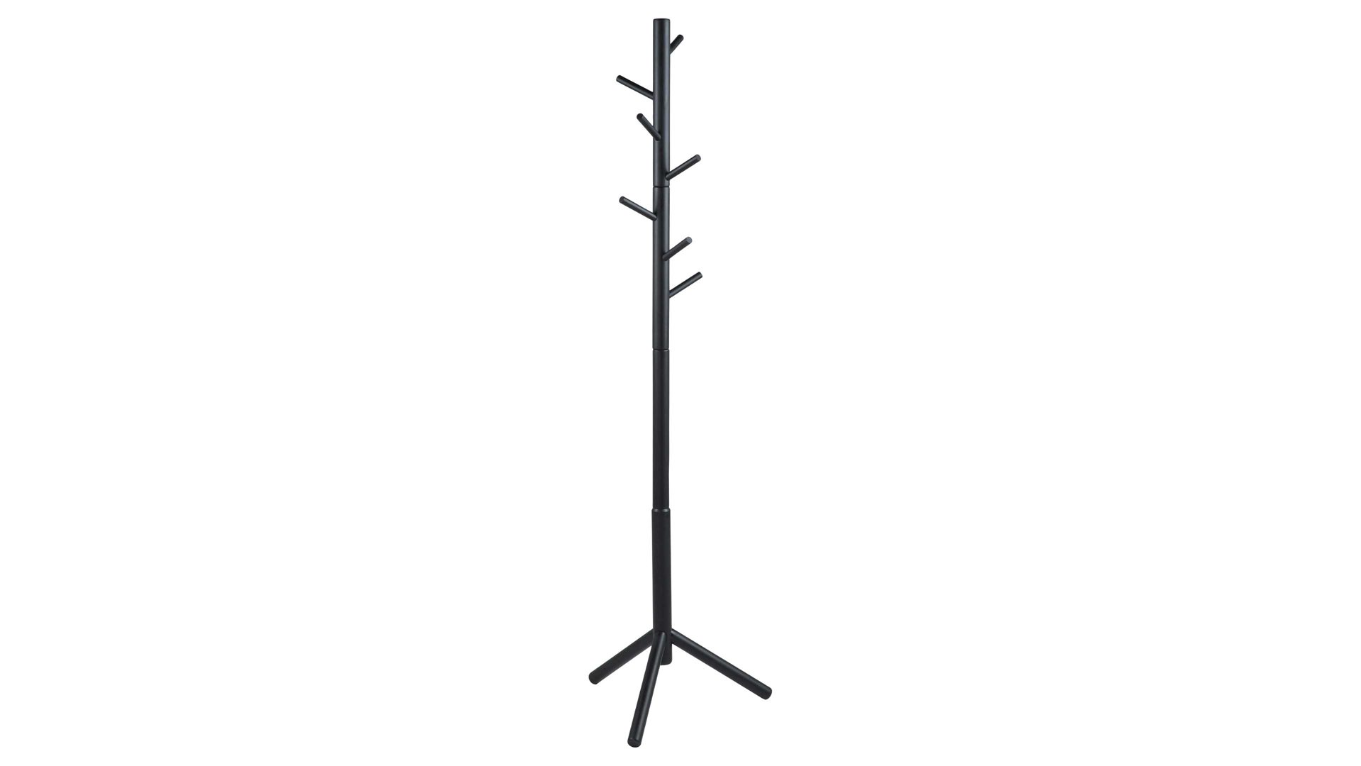 Um Jacken und Mäntel, Schals sowie Mützen ordentlich und unkompliziert zu verstauen, brauchen Sie lediglich diese praktische Standgeraderobe. Der Garderobenständer mit langen Haken bewahrt alles auf, was Sie jeden Tag brauchen und hat dabei sogar Platz für Hüte und Handtaschen. Strukturieren Sie Ihren Eingangsbereich oder Flur mit dem traumhaften Kleiderständer im skandinavischen Design, der in Schwarz angesagte Kontraste zu weißen Flurmöbeln bildet.