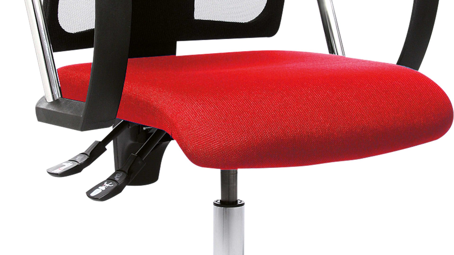 Das deutsche Qualitätsprodukt ist mit einem bequemen Flachsitz und der besonderen Toplift Sitzhöhenverstellung ausgestattet und passt sich dadurch optimal an jede Körpergröße an. Der dunkelrote Sitzbezug und das verchromte Stahlfusskreuz überzeugen durch moderne Optik.