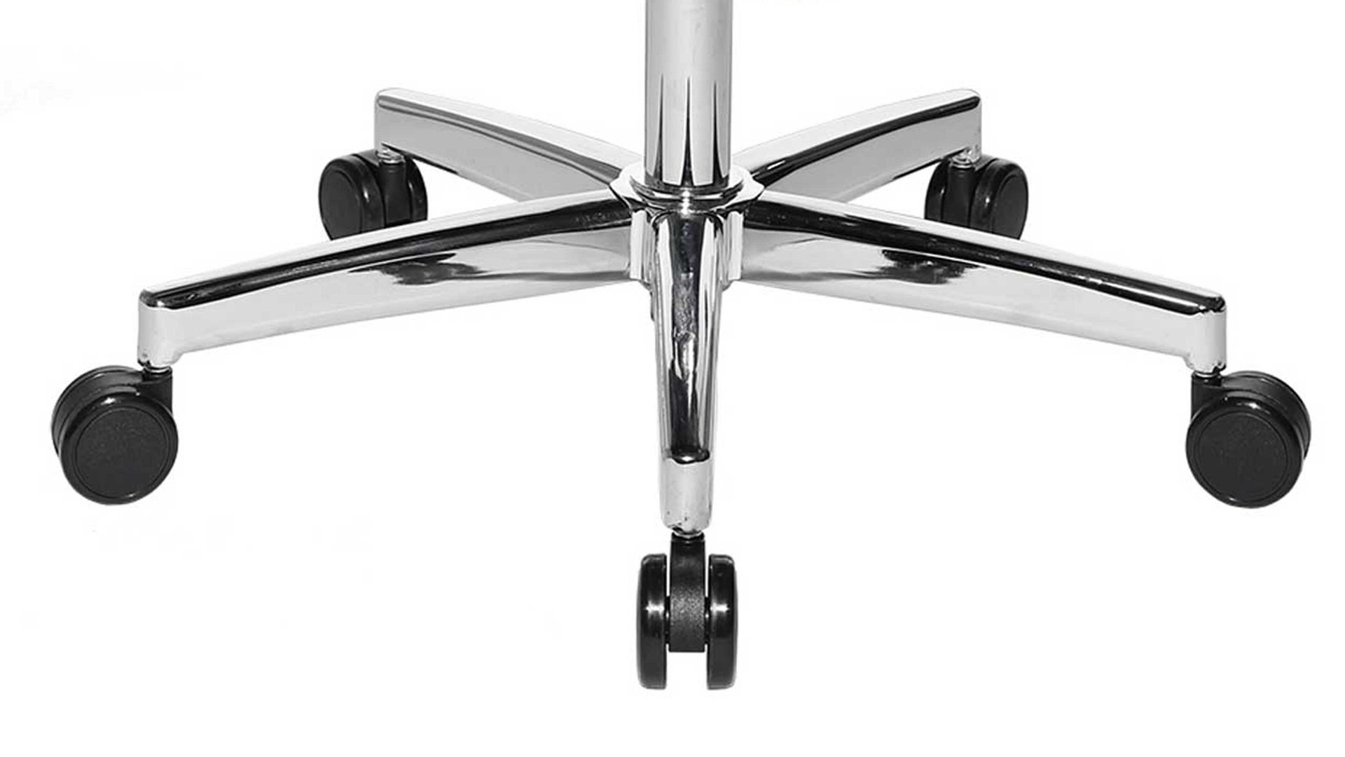 Der komfortable Flachsitz des Bürostuhls besticht durch seine Knierolle und einer sogenannten Punktsynchron-Mechanik, wodurch die Federkraft individuell auf das Körpergewicht anpassbar und mehrfach arretierbar ist. Doch auch auf die Optik wurde hier großen Wert gelegt: Der rote Sitz des Drehstuhls wird aufgefangen von einem edel verchromten Drehkreuz. Die maximale Nutzergröße liegt bei ca. 192 cm, das maximale Nutzergewicht bei ca. 110 kg. Die maximal empfohlene Nutzungsdauer pro Tag sollte acht Stunden nicht überschreiten. Made in Germany.