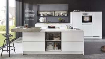 Optional ist die individuell planbare Einbauküche Made in Germany mit einer Armatur und/oder einem Geschirrspüler erweiterbar.