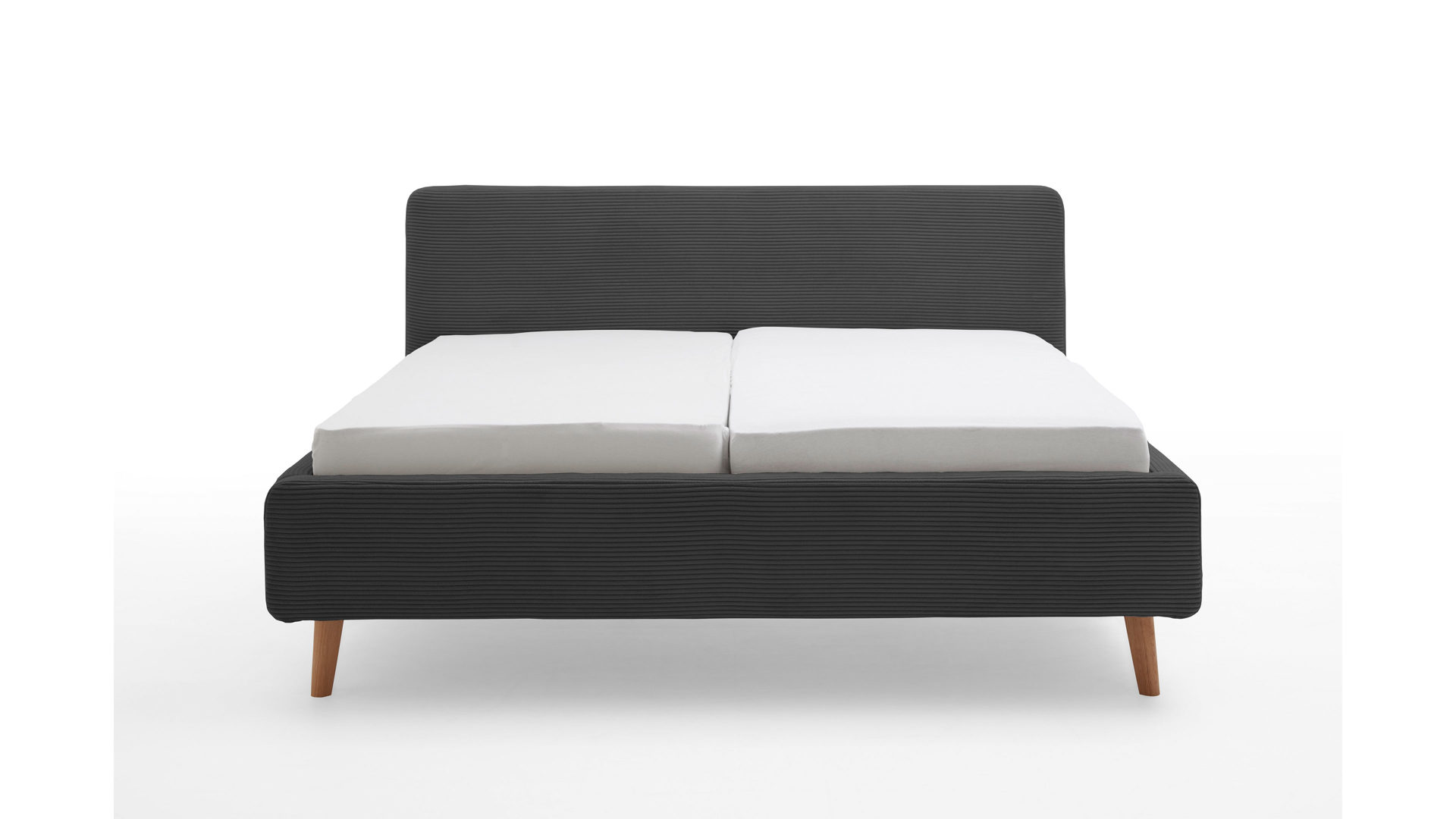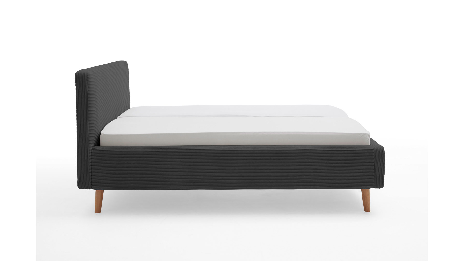 anthrazitfarbener Breitcord Poso 34 & Holzfüße - Liegefläche ca. 140 x 200 cm