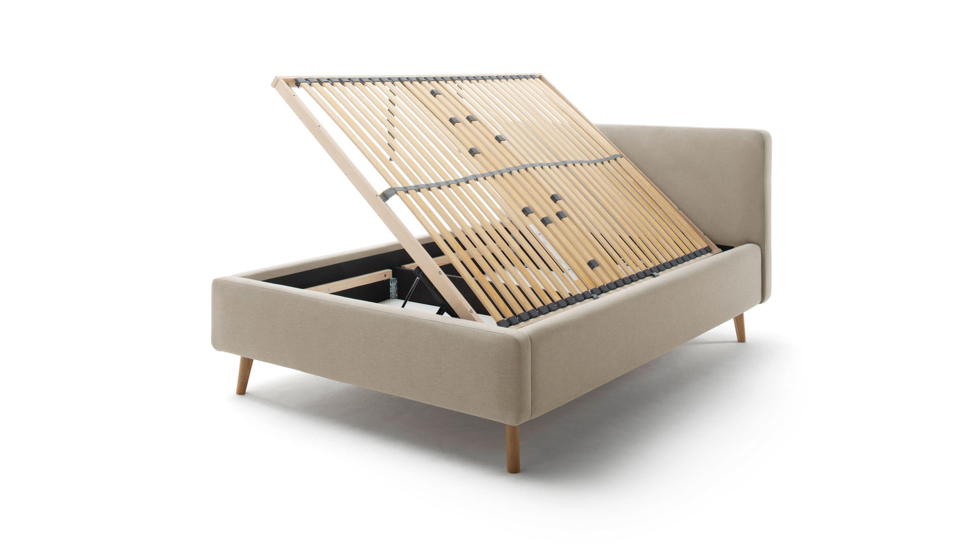 taupefarbenes Flachgewebe Aspen 23 & Holzfüße - Liegefläche ca. 140 x 200 cm