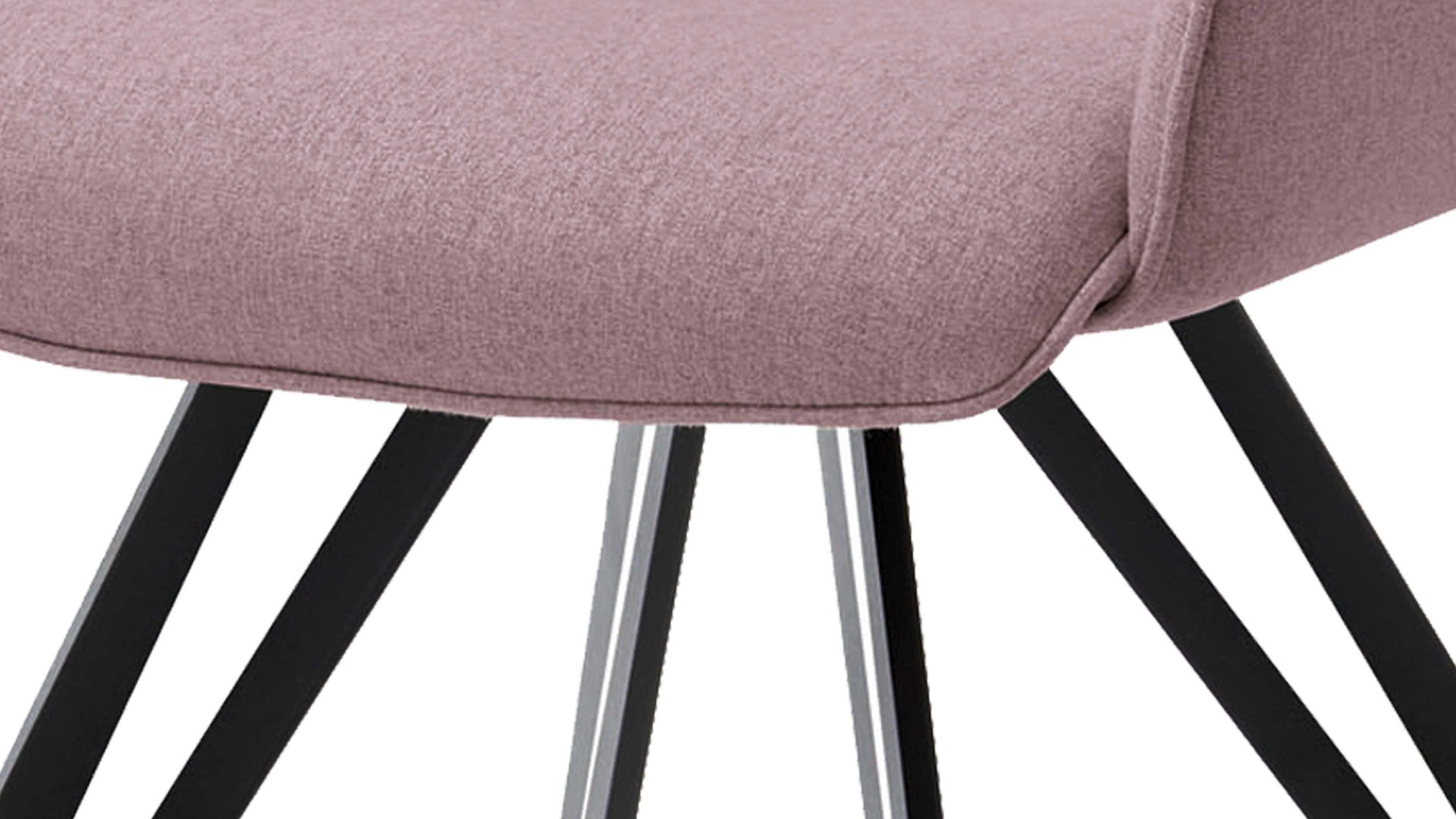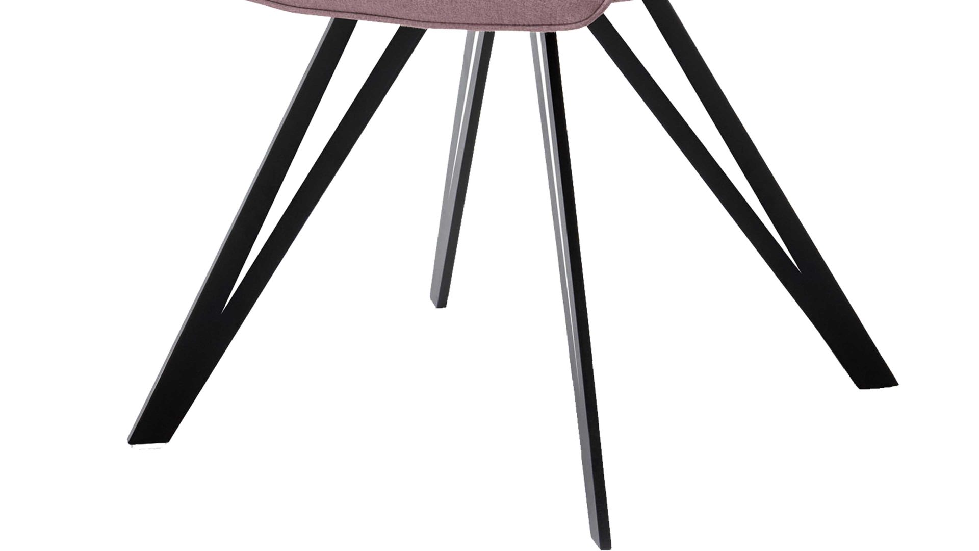 Er kombiniert einen auberginefarbenen Webstoffbezug mit einem schwarz pulverbeschichteten Vierfuß-Flachstahlgestell. Letzteres sorgt für eine stabile Basis sowie für puristisch-elegantes Flair im Esszimmer. Dazu trägt auch der charmante Farbton des hochwertigen, angenehm weichen Stoffbezugs bei. Überdies unterstreicht die spezielle Formensprache des Gestells die originelle Ausstrahlung des Vierfußstuhls.