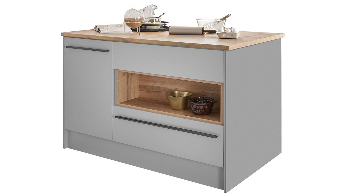 Die Abbildung zeigt ein Wohnbeispiel, welches auch Dekoration enthält. Im Lieferumfang enthalten ist ein Küchenblock.