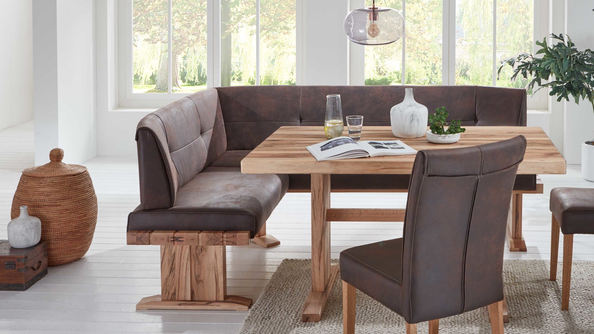 • Die Abbildung zeigt ein Wohnbeispiel, welches auch Dekoration sowie separat erhältliches Zubehör enthält. Im Lieferumfang enthalten ist der Massivholz-Esstisch Gino.