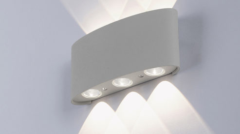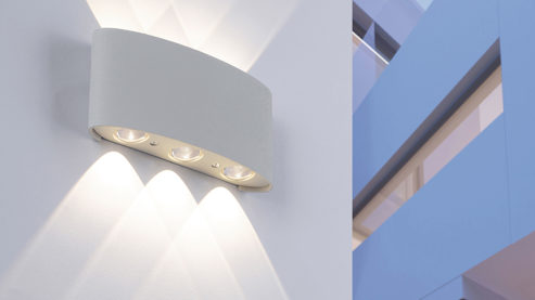 Außenlampe mit halbrundem Lampenschirm und Ausleuchtung nach oben und unten