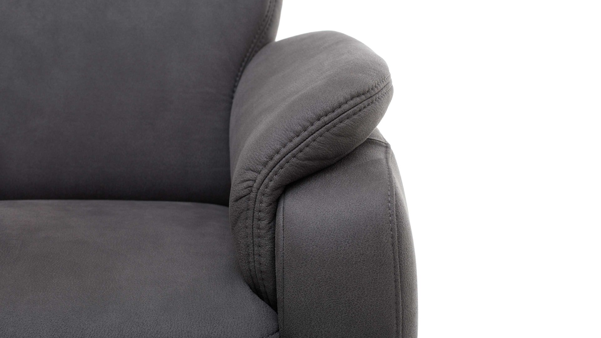 Neben den optischen Vorzügen begeistern die funktionalen Aspekte der Couch. Sie weist eine bequeme Federkernpolsterung auf hochwertiger Wellenunterfederung im Sitz sowie eine PUR-Schaumpolsterung im Rücken auf. In Kombination mit der angenehmen Haptik des Stoffbezugs ergibt sich ein fantastischer Sitzkomfort. Für die nötige Robustheit sorgt das Holzgrundgestell. Überhaupt präsentiert sich der Zweisitzer bestens verarbeitet.