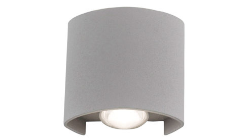 Außenlampe mit halbrundem Lampenschirm und Ausleuchtung nach oben und unten