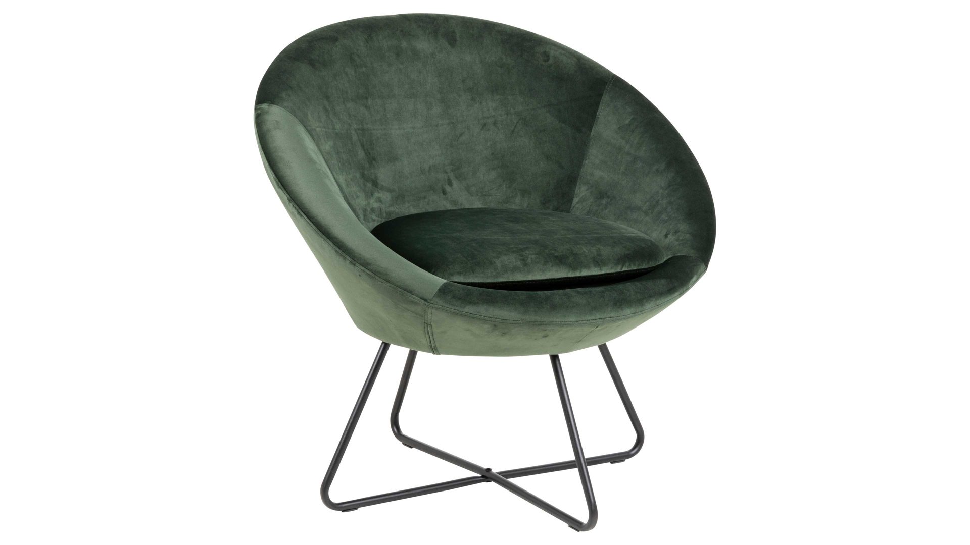 Dabei harmoniert der Polsterstuhl in seiner sanften Formensprache mit zahlreichen Einrichtungsstilen. Moderne Geradlinigkeit ergänzt er ebenso stimmig wie den beliebten Vintage-Trend. In jedem Fall belebt der Relaxstuhl das Interieur durch einen leuchtenden Farbakzent. Dafür sorgt der Samtbezug in Waldgrün. Seine gemütliche Steppung umhüllt sowohl die Sitzfläche als auch die Rückenlehne. Neben dem außergewöhnlichen Farbton erzeugen die gekreuzten filigranen Standfüße einen weiteren Blickfang. Das rau pulverbeschichtete und mattschwarze Metallgestell bildet zum tiefen Grün einen tollen Kontrast.