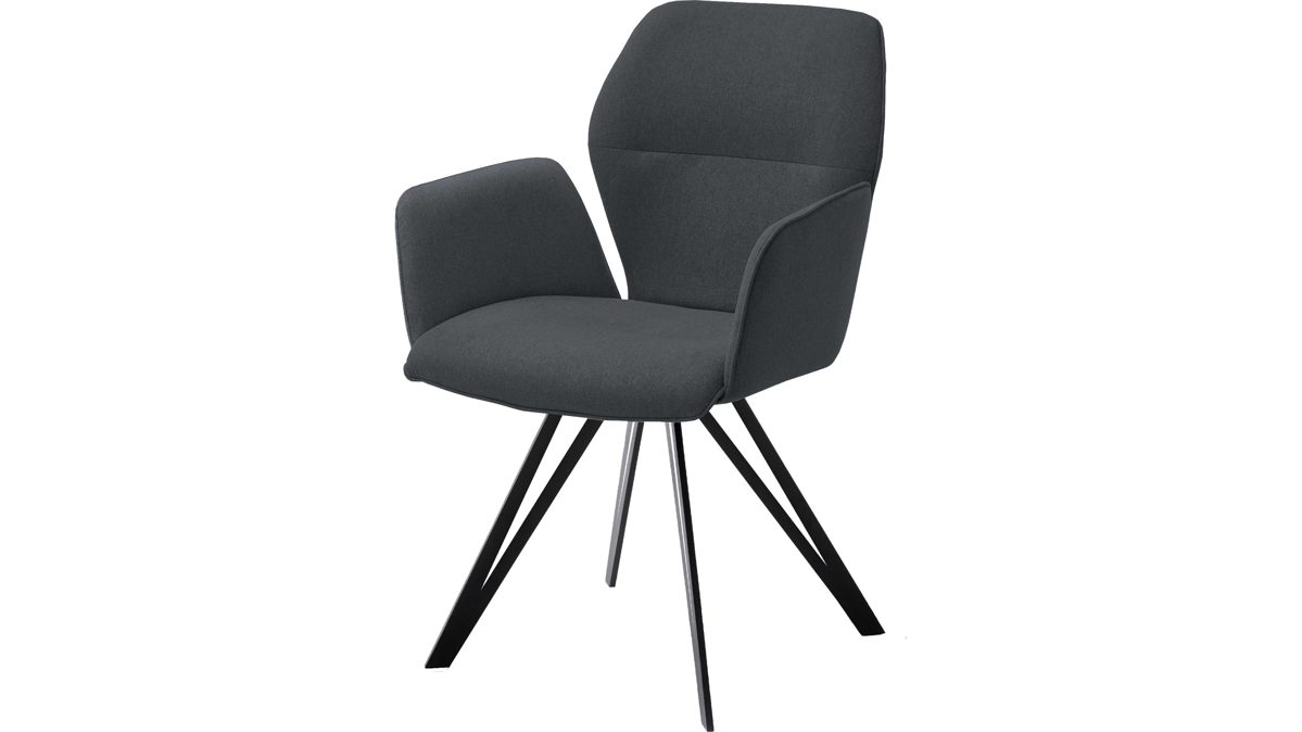 Durch die feine Haptik des Bezugs und die Armlehnen genießen Sie allerhöchsten Sitzkomfort. Darüber hinaus ist der Schalenstuhl um 180 Grad drehbar und mit einer Rückholfunktion ausgestattet. Diese Charakteristika verstärken die an sich schon ausgeprägte Bequemlichkeit, was beispielsweise dann spürbar wird, wenn Sie sich der Person, die am Tisch neben Ihnen sitzt, frontal zuwenden möchten.