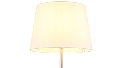 weißer Textil-Lampenschirm und matt nickelfarbenes Metall