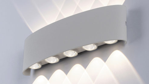 Außenlampe mit halbrundem Lampenschirm und Ausleuchtung nach oben und unten