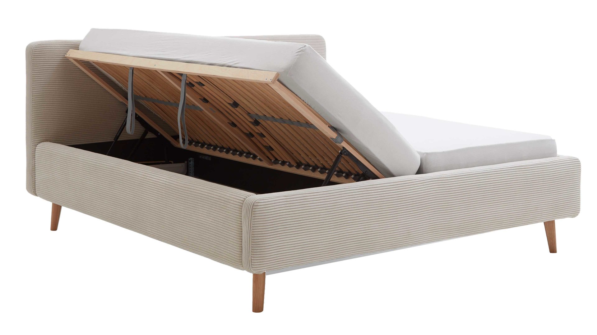 beiger Breitcord Poso 100 & Holzfüße - Liegefläche ca. 180 x 200 cm