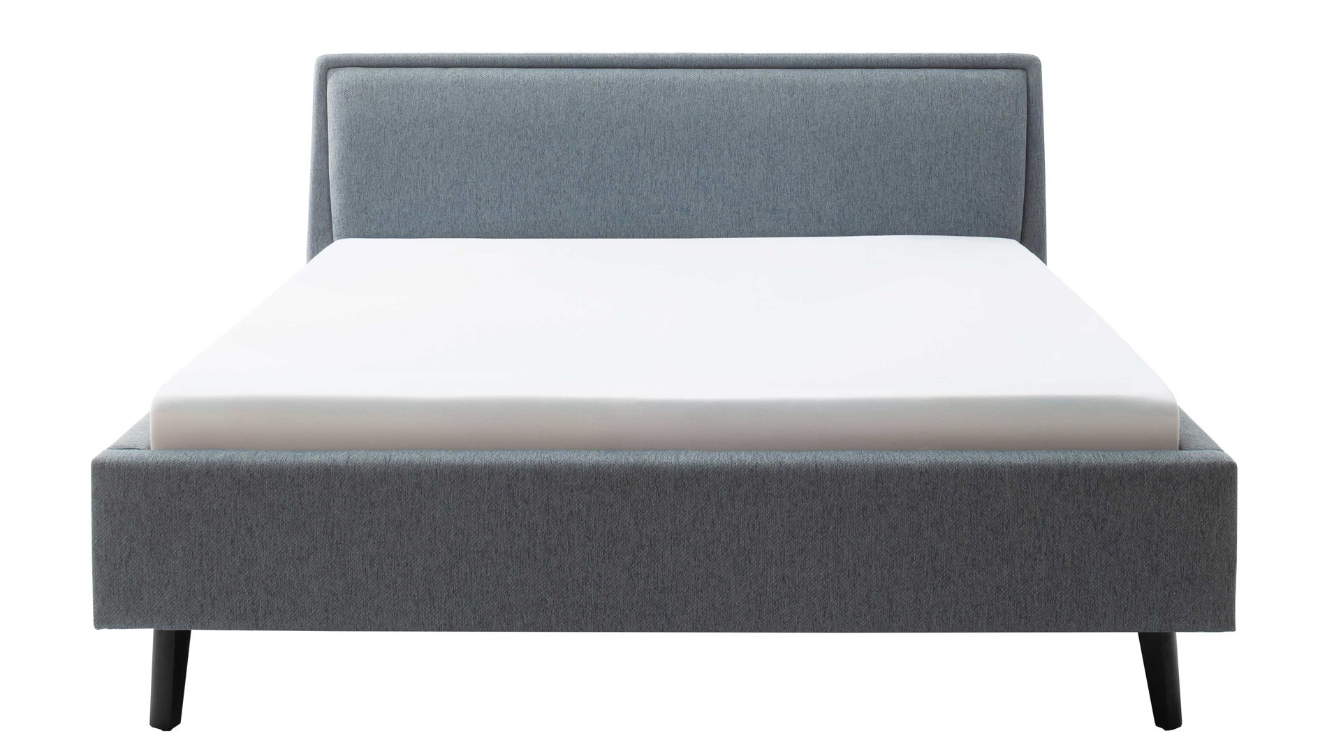 Das Polsterbettgestell Mattis begeistert durch die elegante Optik sowie die hervorragende Material- und Verarbeitungsqualität. Es kombiniert einen eisblauen Flachgewebe-Bezug mit eichefarbenen Holzfüßen. Sowohl die Bettseiten als auch das Polsterkopfteil sind glatt bezogen. Letzteres lädt Sie ein, sich anzulehnen, wenn Sie abends im Bett vor dem Schlafen noch fernsehen oder in einem Buch lesen.