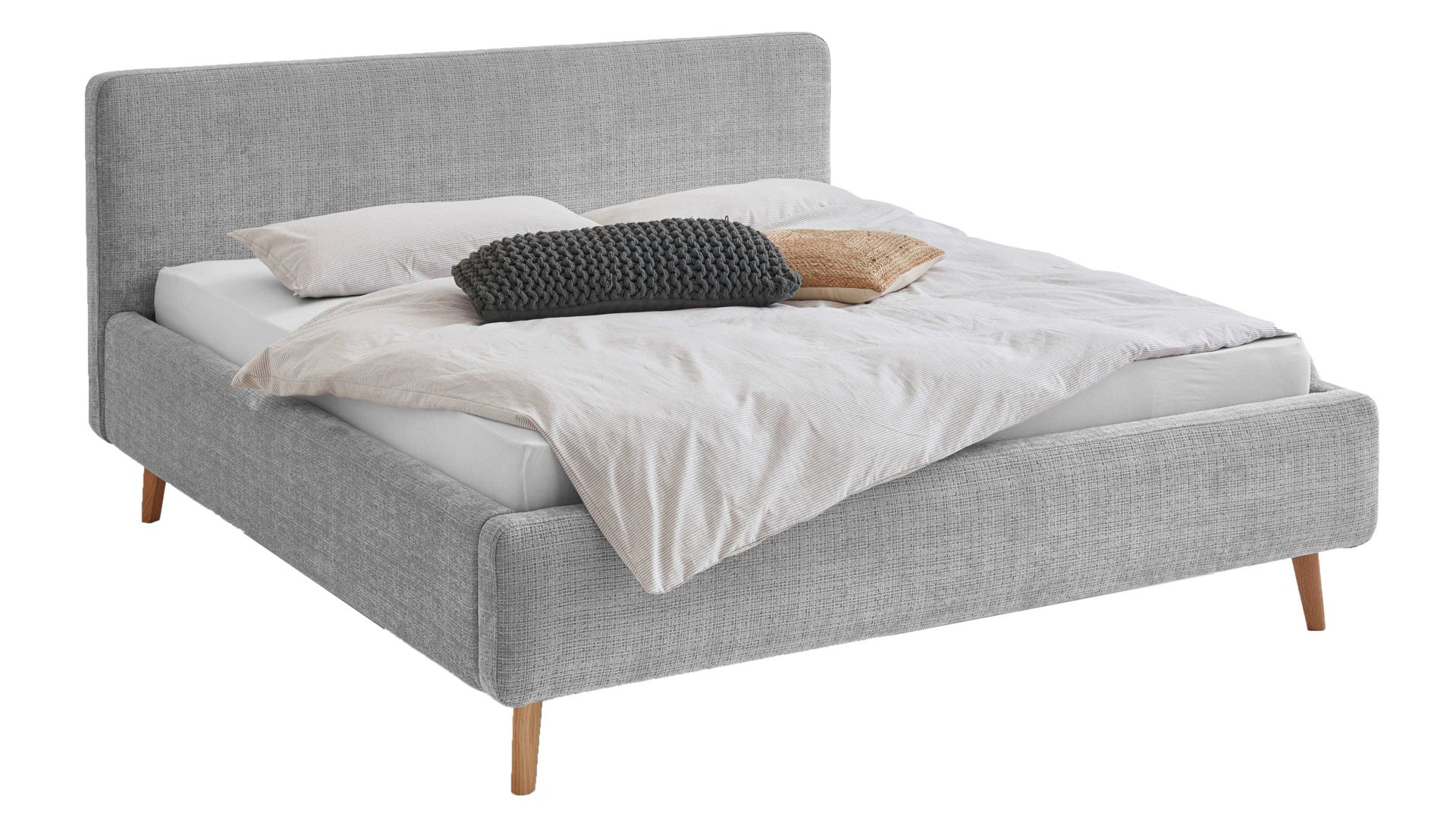 Das Polsterbettgestell Mattis begeistert durch die elegante Optik sowie die hervorragende Material- und Verarbeitungsqualität. Es kombiniert einen grauen Chenille-Bezug mit eichefarbenen Holzfüßen. Sowohl die Bettseiten als auch das Polsterkopfteil sind glatt bezogen. Letzteres lädt Sie ein, sich anzulehnen, wenn Sie abends im Bett vor dem Schlafen noch fernsehen oder in einem Buch lesen.