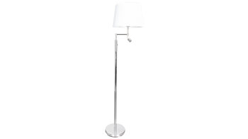 weißer Stoff-Lampenschirm kombiniert mit schwarzem Stahl-Fuß