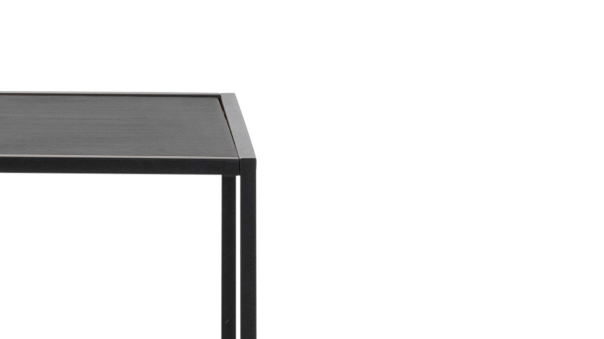 Die Böden in schwarzer Esche-Nachbildung machen das Regal zur ideale Ergänzung von rustikalen Holzmöbeln. Das schwarz pulverbeschichtete Stahlgestell mit rauer Oberfläche gibt dem vielseitig einsetzbaren Büromöbel oder Wohnzimmermöbel die nötige Stabilität und Robustheit.