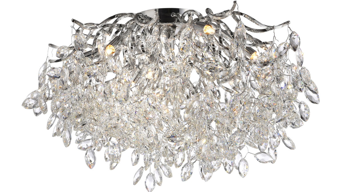 Details  klares Kristallglas kombiniert mit chromfarbenem Metall   72 Stränge mit Kristallglasanhängern   benötigt ...