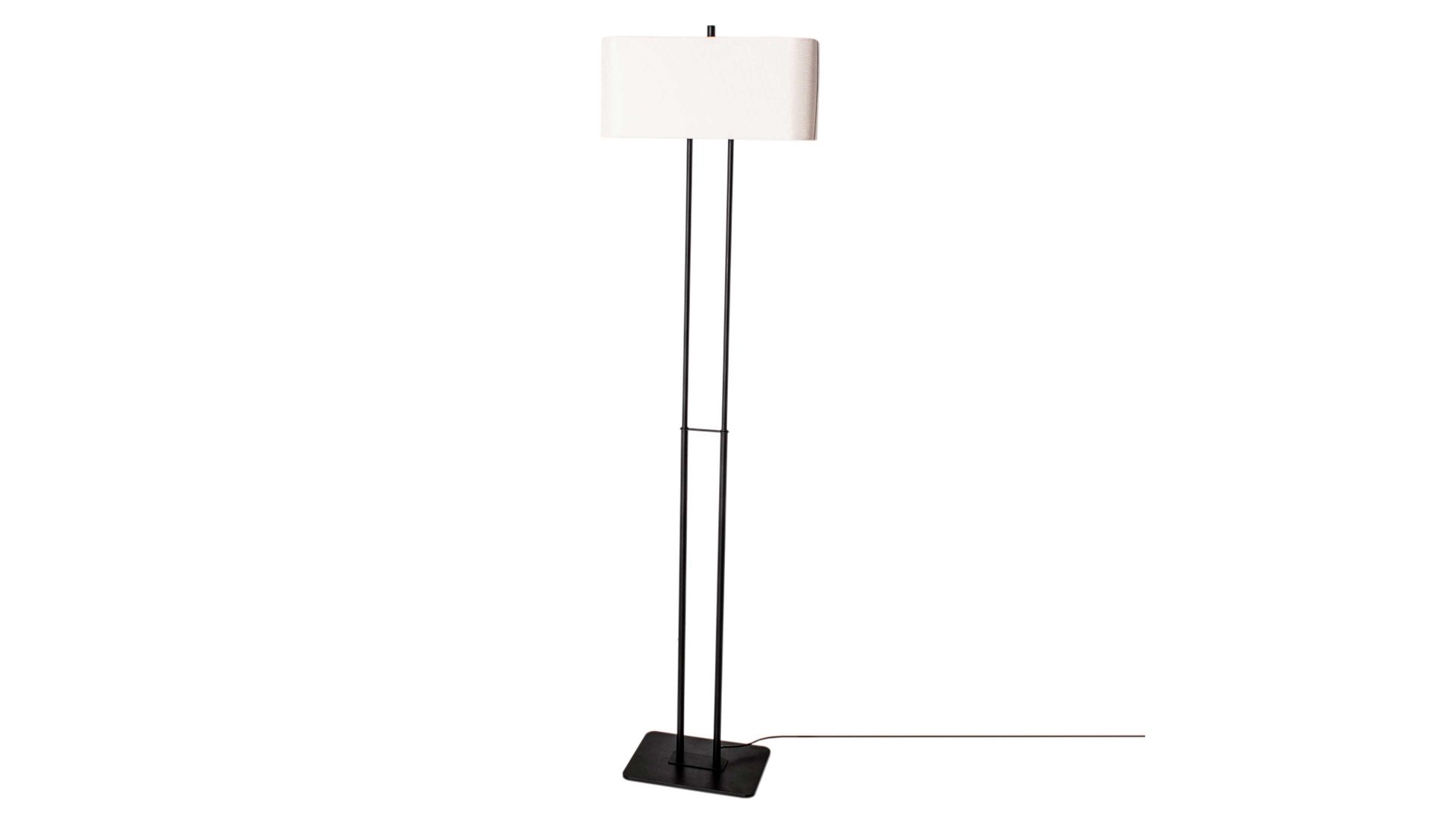 weißer Stoff-Lampenschirm kombiniert mit schwarzem Stahl-Fuß