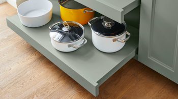 Gegen Mehrpreis können Sie die individuell planbare Systemküche Made in Germany um eine erstklassige Armatur, einen praktischen Geschirrspüler und eine schicke Beleuchtung ergänzen.