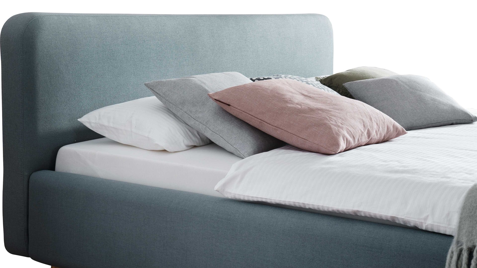 eisblaues Flachgewebe Aspen 84 & Holzfüße - Liegefläche ca. 140 x 200 cm