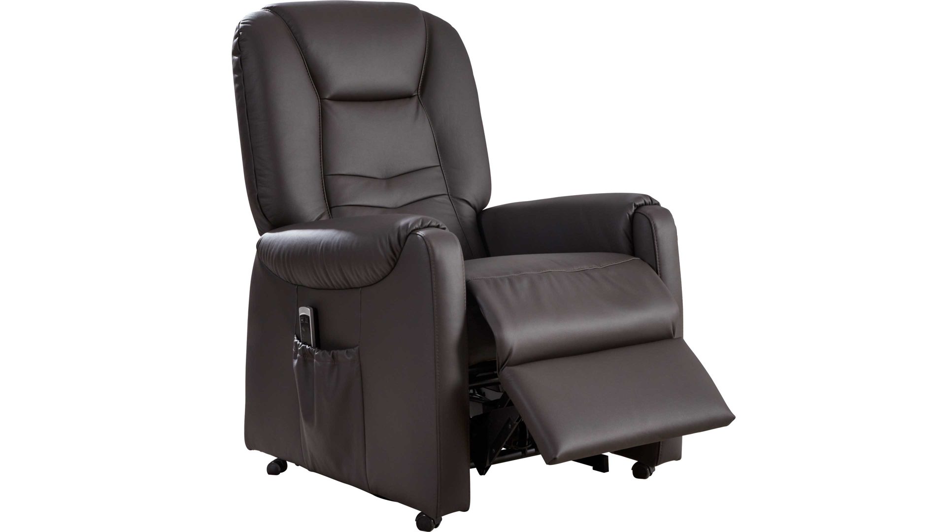 Überhaupt ermöglicht der Sessel Carlos Entspannung vom Feinsten. Er verfügt über zwei Motoren, mit denen sich die standardmäßige Sitzposition getrennt zur TV- und Liegeposition verstellen lässt. Zudem leistet der TV-Sessel bei Bedarf Aufstehhilfe. Ein weiteres funktionales Highlight ist die manuelle Kopfteilverstellung - für eine effektive Entlastung des Kopf-Nacken-Bereichs. In der praktischen Seitentasche finden beispielsweise die Fernbedienungen für TV und Medienplayer Platz. Der Sessel selbst wird bequem mittels Handschalter bedient.